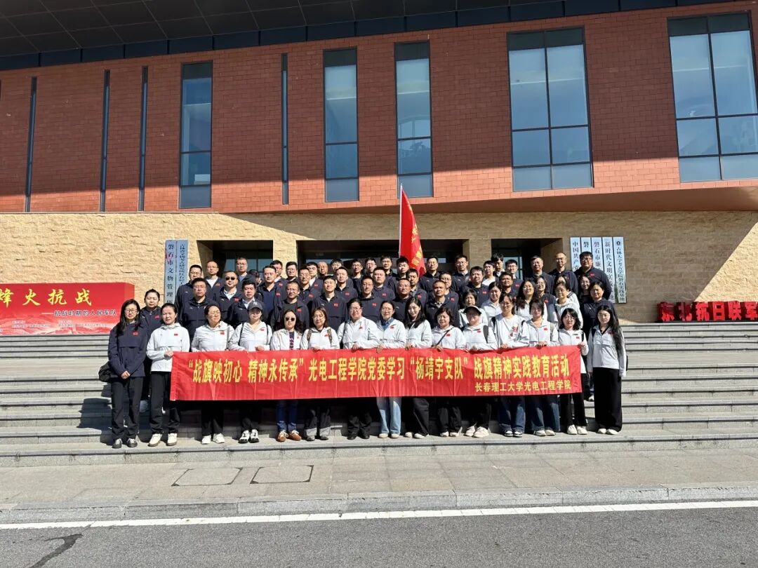 为纪念中国人民抗日战争暨世界反法西斯战争胜利80周年,贯彻省委书记黄强关于《大力弘扬东北抗联精神》的讲话精神,弘扬爱国主义精神,厚植家国情怀,铭记历史征程,激发师生使命担当,在国庆节前夕,光电工程学院党委组织教师党员赴吉林省磐石市抗日斗争纪念馆开展“战旗映初心 精神永传承”光电工程学院党委学习“杨靖宇支队”战旗精神实践教育活动。
